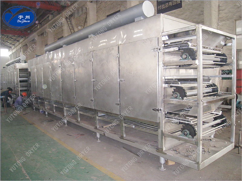 The DW series multi-layer belt dryer is a continuous drying equipment used in mass production, used for drying sheet, strip, and granular materials with good breathability. It is particularly suitable for dehydrated vegetables, catalysts, traditional Chinese medicine decoction pieces, and other materials with high moisture content and temperature requirements; This series of dryers has the advantages of fast drying speed, high evaporation intensity, and good product quality. For dehydrated cake like paste materials, they need to be granulated or made into strips before drying.