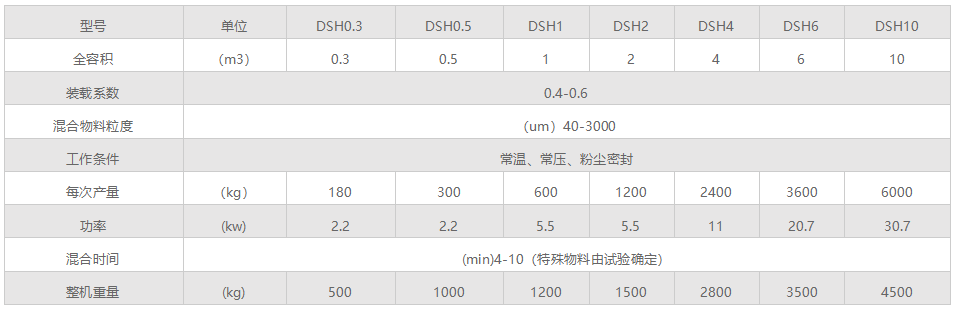 4. 上升的物料受自身重力作用下降 。四種運動在混合機內產生對流、剪切 、擴散、從而達到快速均勻混合的目的。