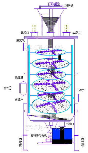 每層干燥盤皆可單獨通入熱介質(zhì)或冷介質(zhì),對物料進(jìn)行加熱或冷卻,物料溫度控制準(zhǔn)確、容易。