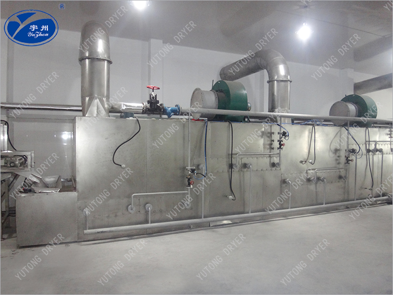 ленточная сушилка состоит из системы подачи, системы ткани, системы фильтрации впуска, системы нагрева и охлаждения, главного компьютера, трансмиссии, системы фильтрации перепускного канала, системы сброса, системы выхлопа и осушения, системы управления и т. д. При работе материал подается из системы подачи в систему ткани, а затем добавляется в ленточную сушилку. Материал встречается с холодным и горячим воздухом, проходящим через сетчатую ленту, для теплопередачи. Горячий воздух перерабатывается для снижения энергопотребления. После достижения определенной влажности некоторые из них принудительно увлажняются для удаления влаги, а материал высыхает и охлаждается.