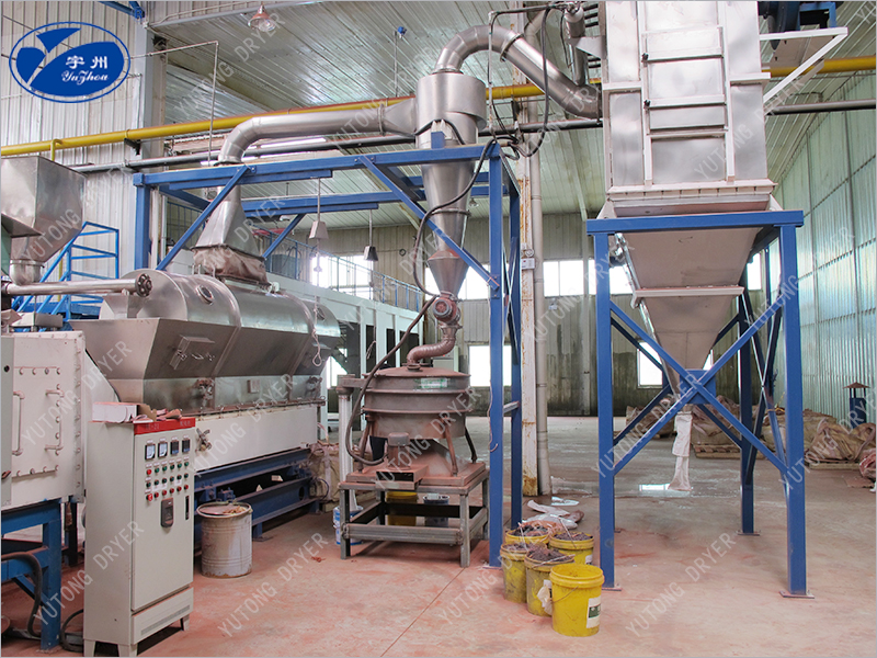 3. Благодаря применению вибрации можно снизить скорость минимального потока газа, что может значительно снизить потребность в воздухе и, следовательно, уменьшить захват пылевого слоя. Соответствующие источники тепла, вентиляторы, циклонные сепараторы и т. Д. также могут соответственно уменьшить размер, уменьшить комплект оборудования, что приводит к значительному энергосберегающему эффекту. Регулируя вибрационные параметры, можно легко изменить время пребывания внутри машины. Операция с поршневым потоком снижает требования к однородности и регулярности диаметра частиц материала и облегчает получение однородных сухих продуктов.