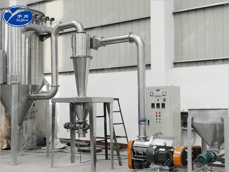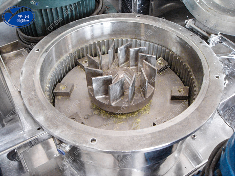 Материал поступает в дробилку через бункер и спиральный конвейер. Измельченный материал срезается высокоскоростными лопастями, чтобы получить измельчение. Затем материал подается в циклонный сепаратор, мешковый пылеуловитель, который транспортирует выбросы через воздух с отрицательным давлением для удовлетворения требований продукта.