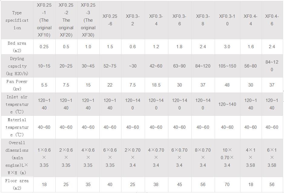 Горизонтальная сушилка с псевдоожиженным слоем серии XF, также известная как псевдоожиженный или псевдоожиженный слой, состоит из воздушных фильтров, хостов с псевдоожиженным слоем, циклонных сепараторов, мешковых фильтров, центробежных вентиляторов высокого давления и панелей управления. Поскольку свойства сухих материалов различны, их можно рассматривать по мере необходимости при согласовании оборудования для удаления пыли. Можно выбрать циклонный сепаратор и мешковый фильтр или один из них. Как правило, для более высокой доли порошковых и гранулированных материалов необходимо выбрать только циклонный сепаратор для сушки. Мелкие частицы и порошкообразные материалы с более легким удельным весом должны быть оборудованы мешковыми пылеуловителями с возможностью выбора пневматических загрузочных устройств и ленточных конвейеров. Паровые, электрические и тепловые печи могут быть оборудованы (в соответствии с требованиями пользователя).