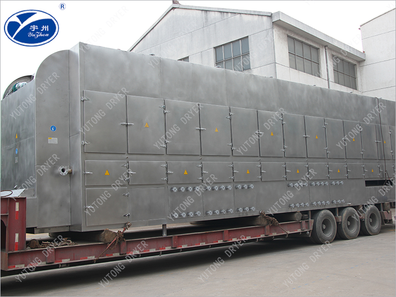 1、Характеристики этой серии ленточных сушилок включают в себя достижение передового внутреннего уровня в области проточного нагрева, стратифицированного впуска, сегментной сушки с переменной температурой и рекуперации отработанного тепла。