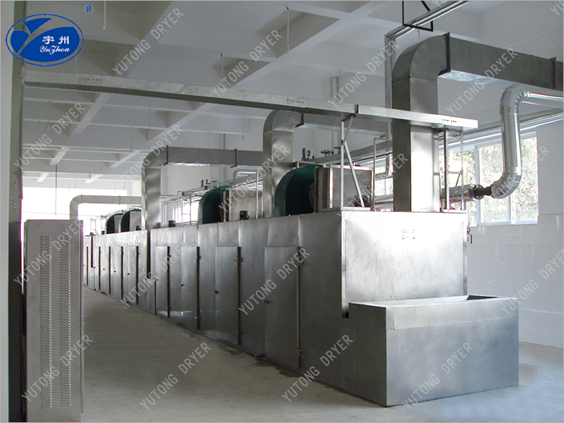 Он особенно подходит для обезвоженных овощей, таблеток китайской медицины и других материалов с высоким содержанием воды и теплочувствительности. Он имеет преимущества быстрой сушки, высокой интенсивности испарения и хорошего качества продукта. Ленточные сушилки широко используются в промышленности, в основном для сушки небольших кусков материала и волокнистых материалов. Короче говоря, материал, высушенный с помощью ленточной сушилки, должен иметь определенную форму и сохранять определенную форму после сушки.