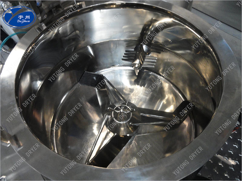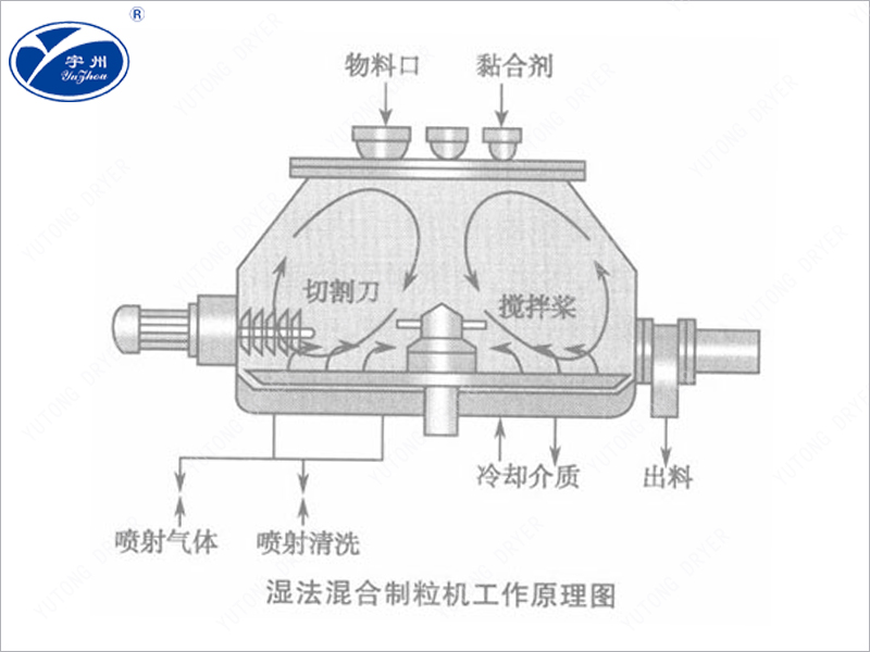 Порошковый материал и клей полностью смешиваются в цилиндрическом контейнере из нижней пасты, образуя влажный мягкий материал, который затем разрезается на однородные влажные частицы высокоскоростным шлифовальным лезвием, размещенным на боку。